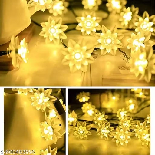 Name: 14 LED Double Layer Lotus Flower String Lights - 3M Warm White Plug-in Fairy Lights for Diwali Decoration, Christmas, Mandir, Home, Party, Festival & Bedroom Decor