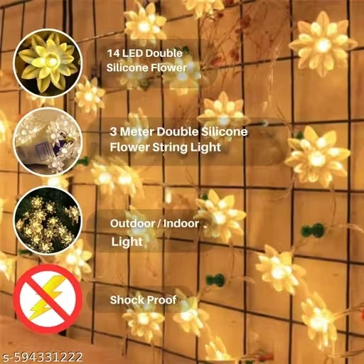 Product Name: 14 LED 3 Meter Lotus Double Silicone Flower String Light Fairy Light for Home Decoration, Indoor Outdoor Decoration Waterproof Flower Light for Diwali, Christmas (Warm White)