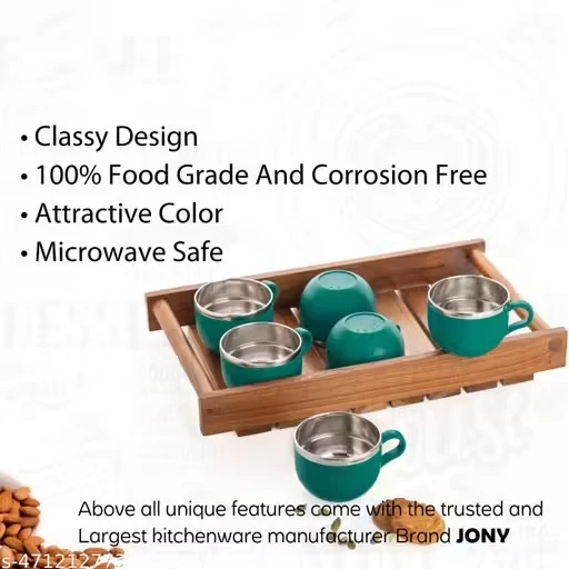 "Stay cozy this winter with SUNITI’s Classic Tea Cup Set! This set of 6 insulated thermoware cups features durable stainless steel interiors and stylish plastic exteriors, perfect for enjoying your favorite chai or coffee. Compact and chic, the Payali mini cups keep every sip warm and delightful. Ideal for every tea lover!"