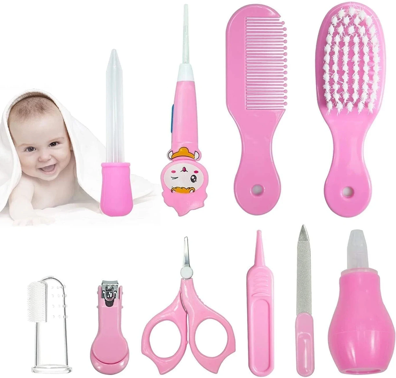 Includes essential newborn grooming and healthcare tools required for everyday baby hygiene and maintenance.