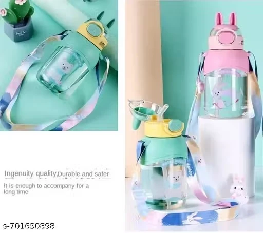 Name: cartoon print Bunny ears BPA Free Straw water bottle for girls, boys and kids 650 ml Water Bottle (Set of 1, Multicolor)