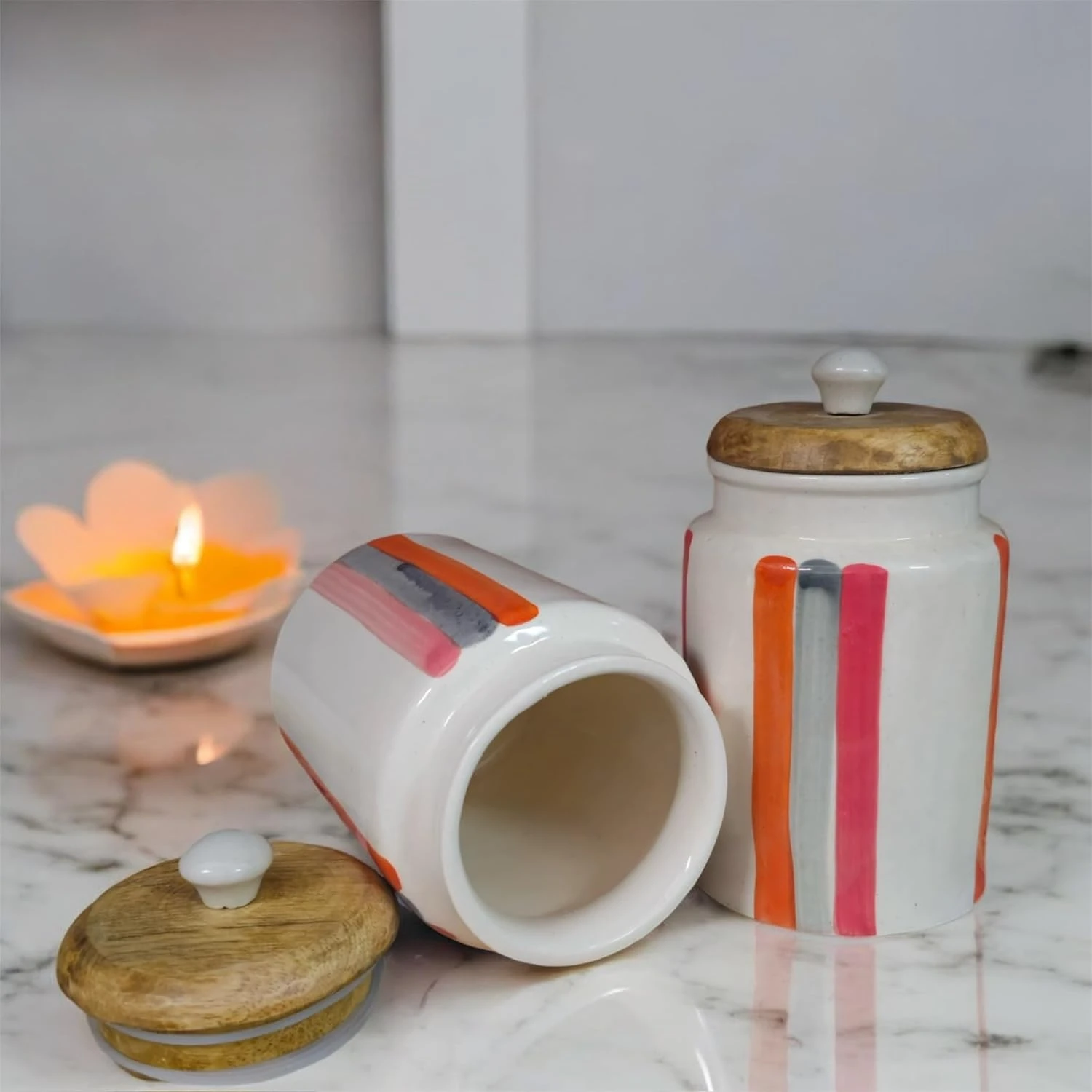 Durable Construction: Crafted from high-quality ceramic, these jars are built to last. The robust material ensures they withstand daily use while maintaining their pristine appearance.
