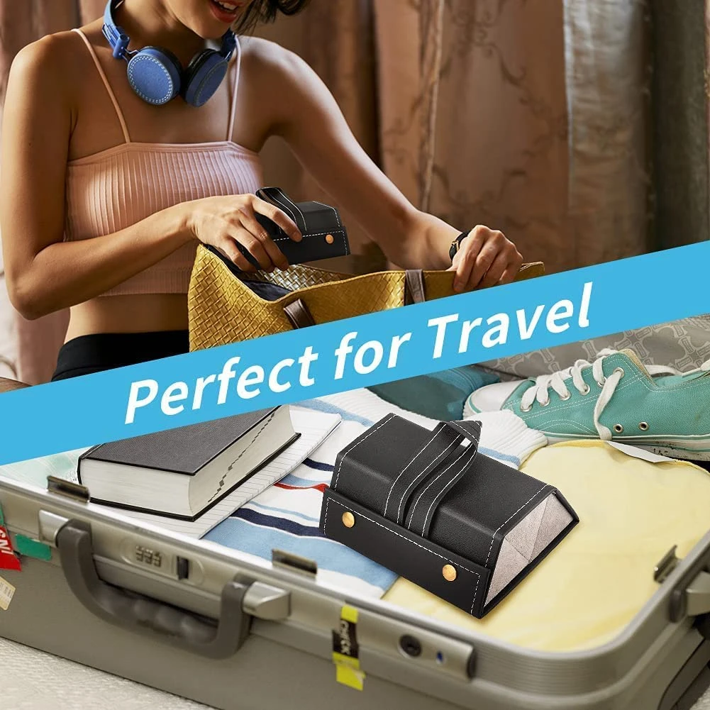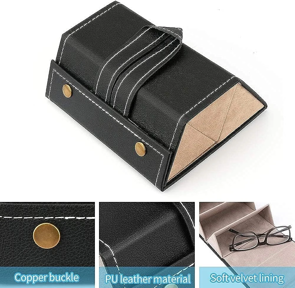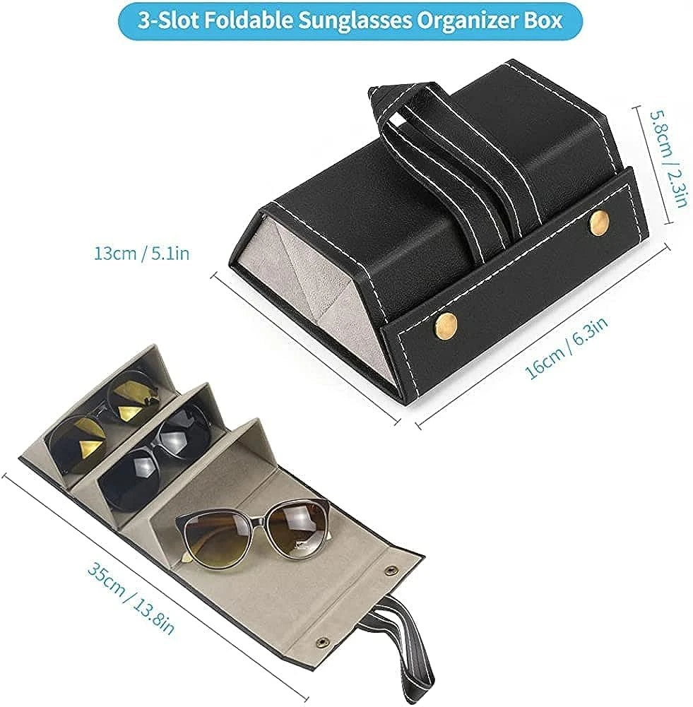 Light weight but sturdy and durable, adds minimum weight while on the go or carrying around and keep your sunglasses safe. Small enough to fit in a purse or suitcase, takes up minimal space in suitcase. Very convenient, keeps all your sunglasses and glasses together in one place! Just open and find the pair you want. Took this on vacation filled with your sunglasses and regular this was so easy and glasses always ready to wear.