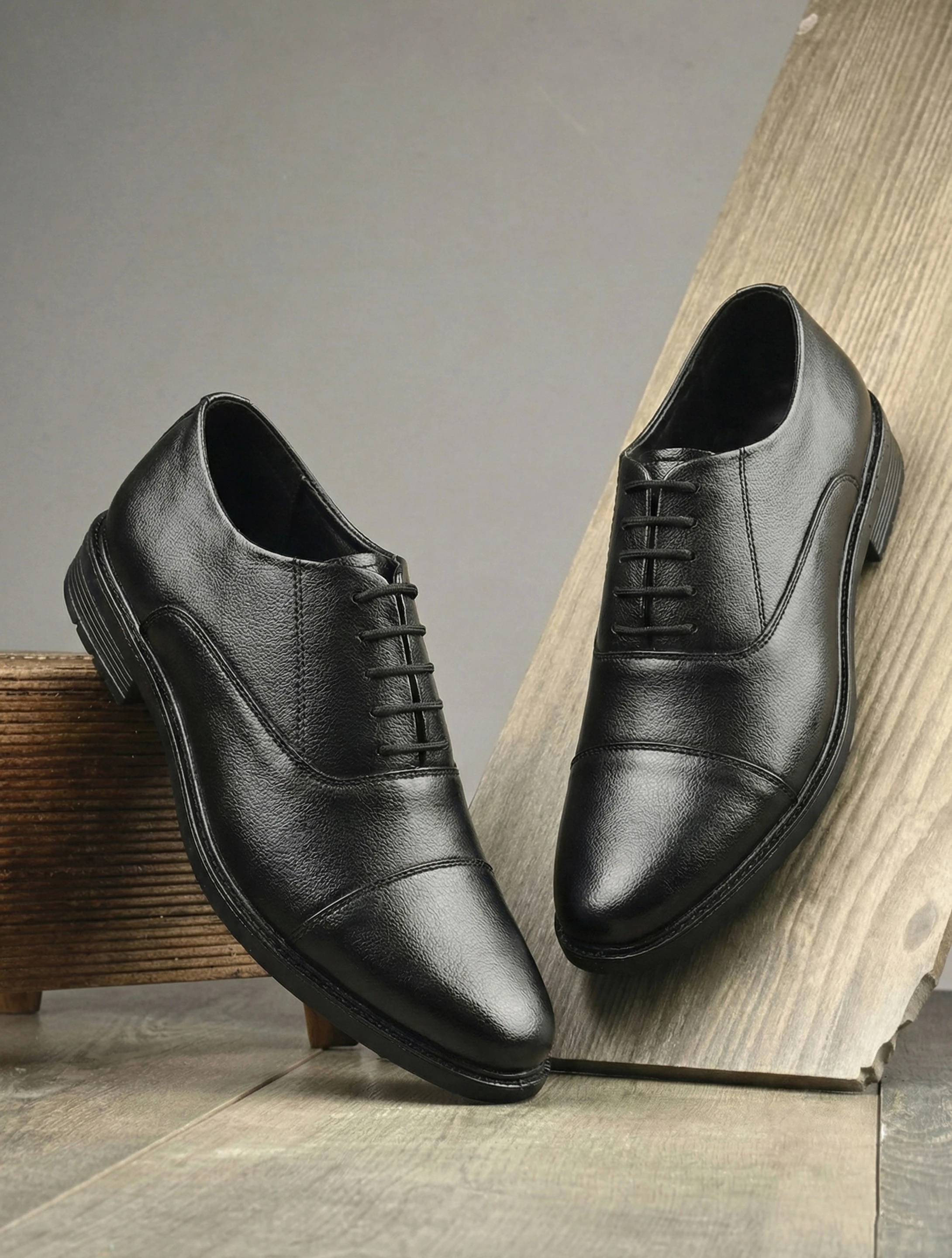Step out in style with these classic black formal lace-up shoes. Crafted from high-quality synthetic leather with a subtle textured finish, these shoes feature a sophisticated cap toe design. The comfortable fit and durable sole make them perfect for long hours. Ideal for formal occasions, office wear, business meetings, and special events. Pair them with suits, trousers, and formal shirts for a polished and professional look.