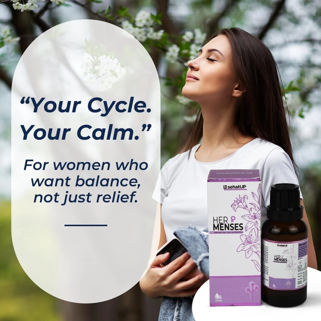 Balances Hormones Safely & Gently: HerMenses helps manage hormonal imbalances by working at the root level. It supports your endocrine system to restore equilibrium, reduce PMS symptoms & promote overall emotional well-being without causing addictiveness.