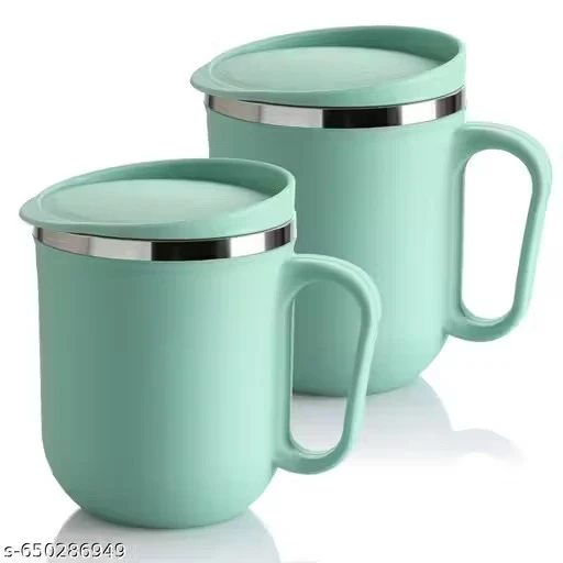 Name: Plastic Inner Stainless Steel Tea/Milk/Coffee Mug Set Of 2 Pic - 300 ML EACH
