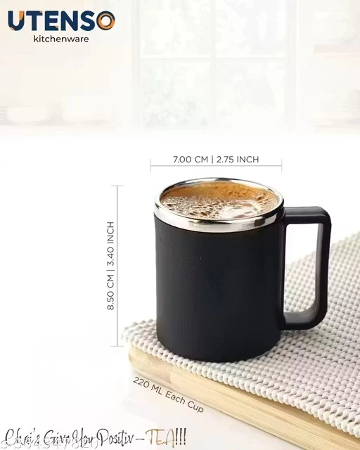 Upgrade your drinkware collection with this Premium Black Stainless Steel Coffee & Tea Mug Set designed for durability, style, and practicality. These lightweight, BPA-free, and unbreakable 220ml cups are perfect for everyday use in your home, office, or travel adventures. With a sleek black finish and classy design, these mugs make a luxurious yet functional addition to your kitchen.