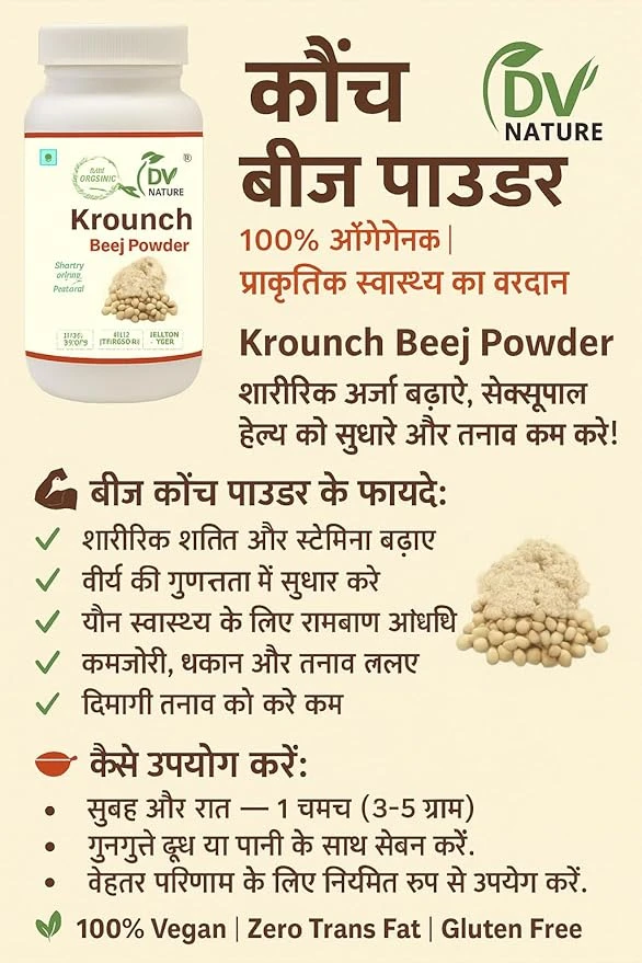 Mucuna Pruriens, A Tropical Legume Also Known As Velvet Bean, Has Been Used By Ancient Healers And Is Making Waves In The Scientific Community. 100% Veg and Natural Herbs In Powder Form Ayurvedic Herbs Dosage: As Advised By The Physician Made Out Of Quality And Authentic Ayurvedic Herbs Available In India. Ayurvedic Herbs