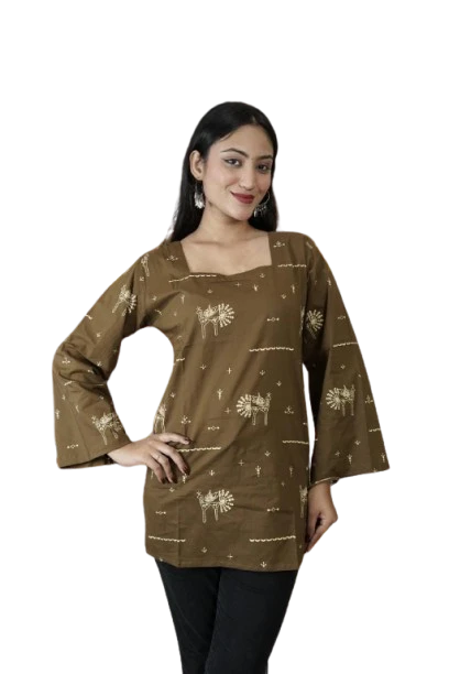 Embrace the perfect blend of style and comfort with the Women's Floral Print Brown Kurti, a must-have addition to your fashion collection.