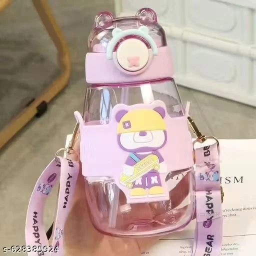 Name: X Pulse BPA Free Plastic Cute Water Bottles for Kids with Soft Silicone Straw, Adjustable Strap and Secure Lock, 600ml (Pack of 1, Multicolor)