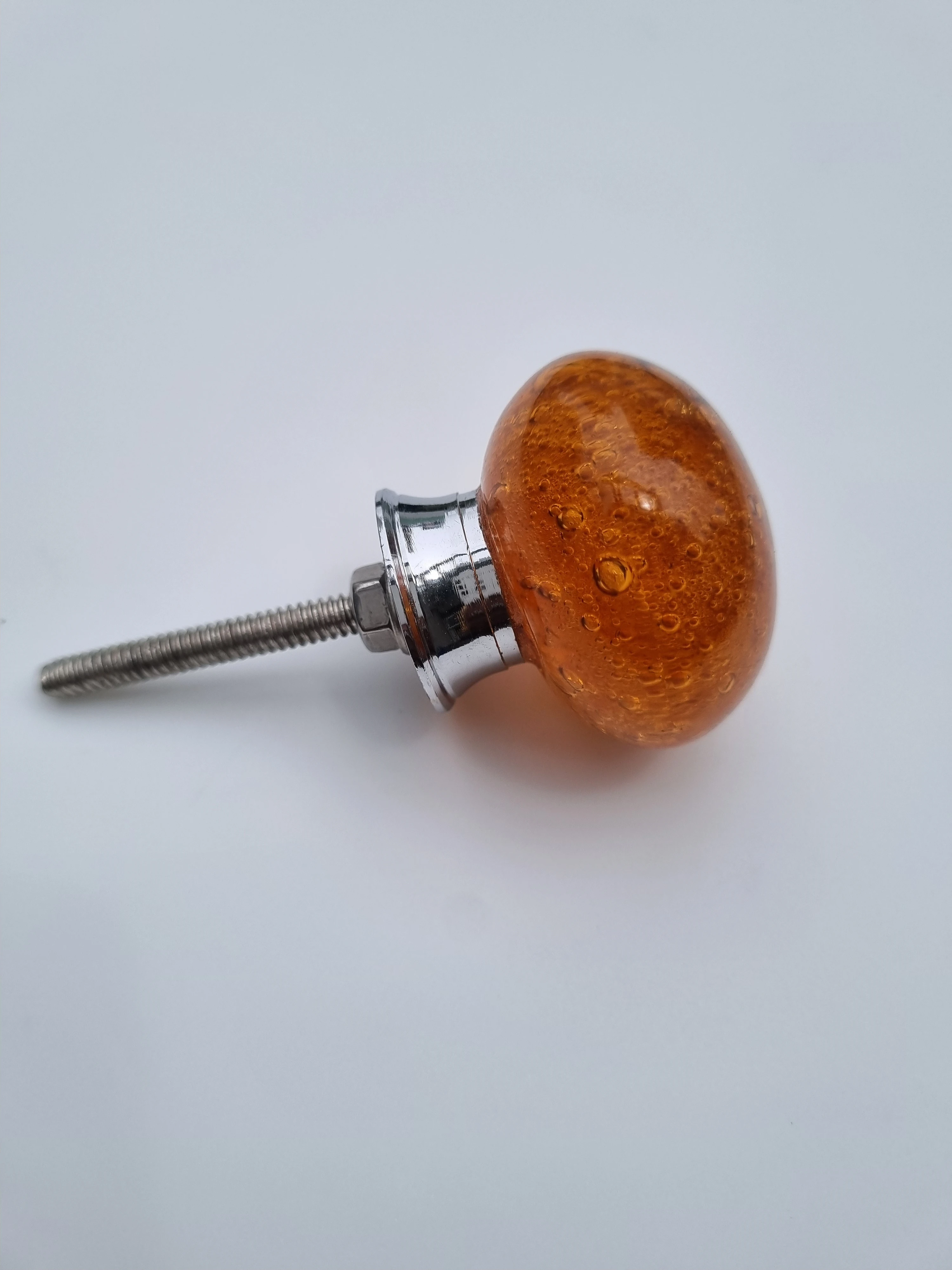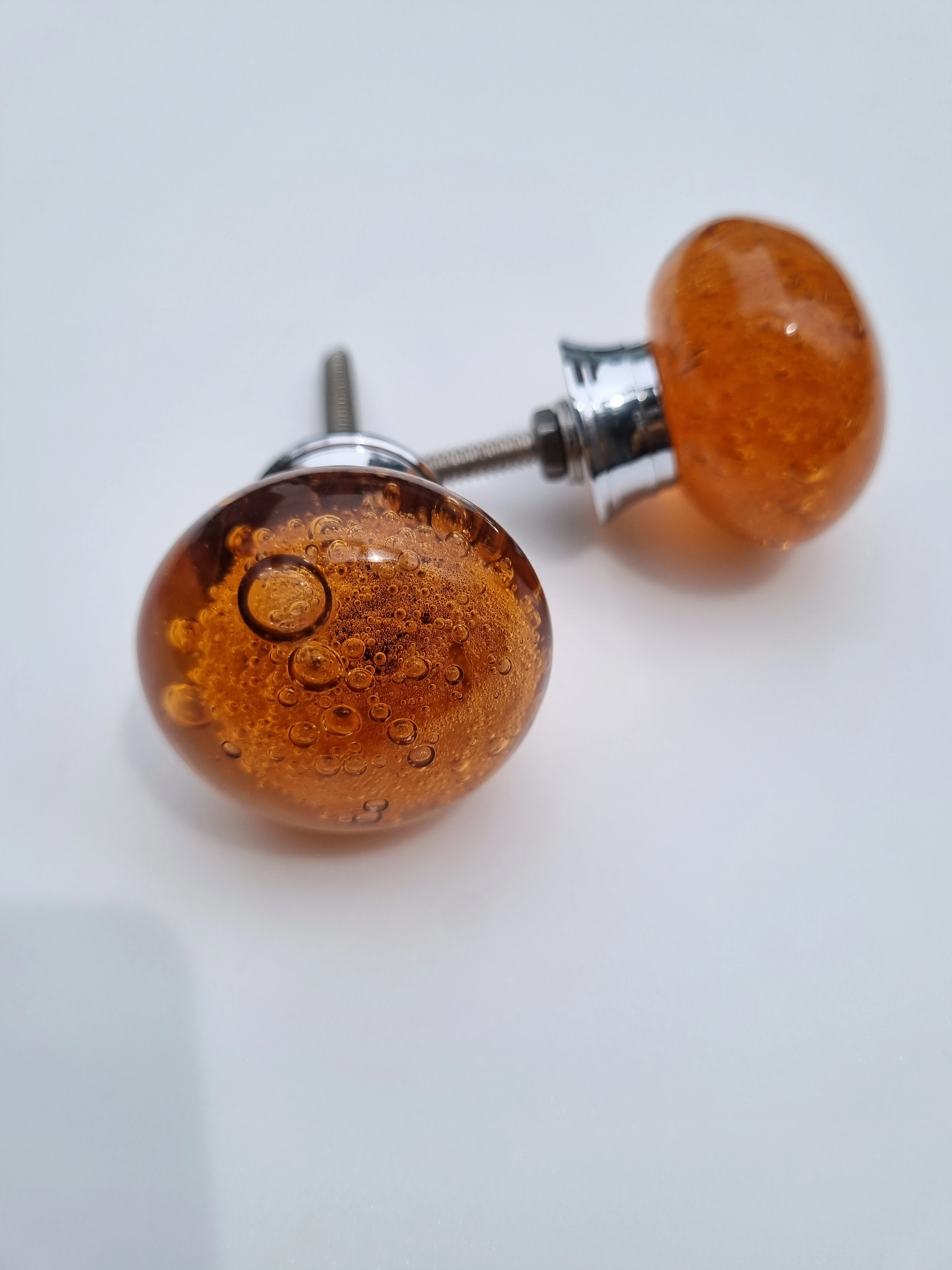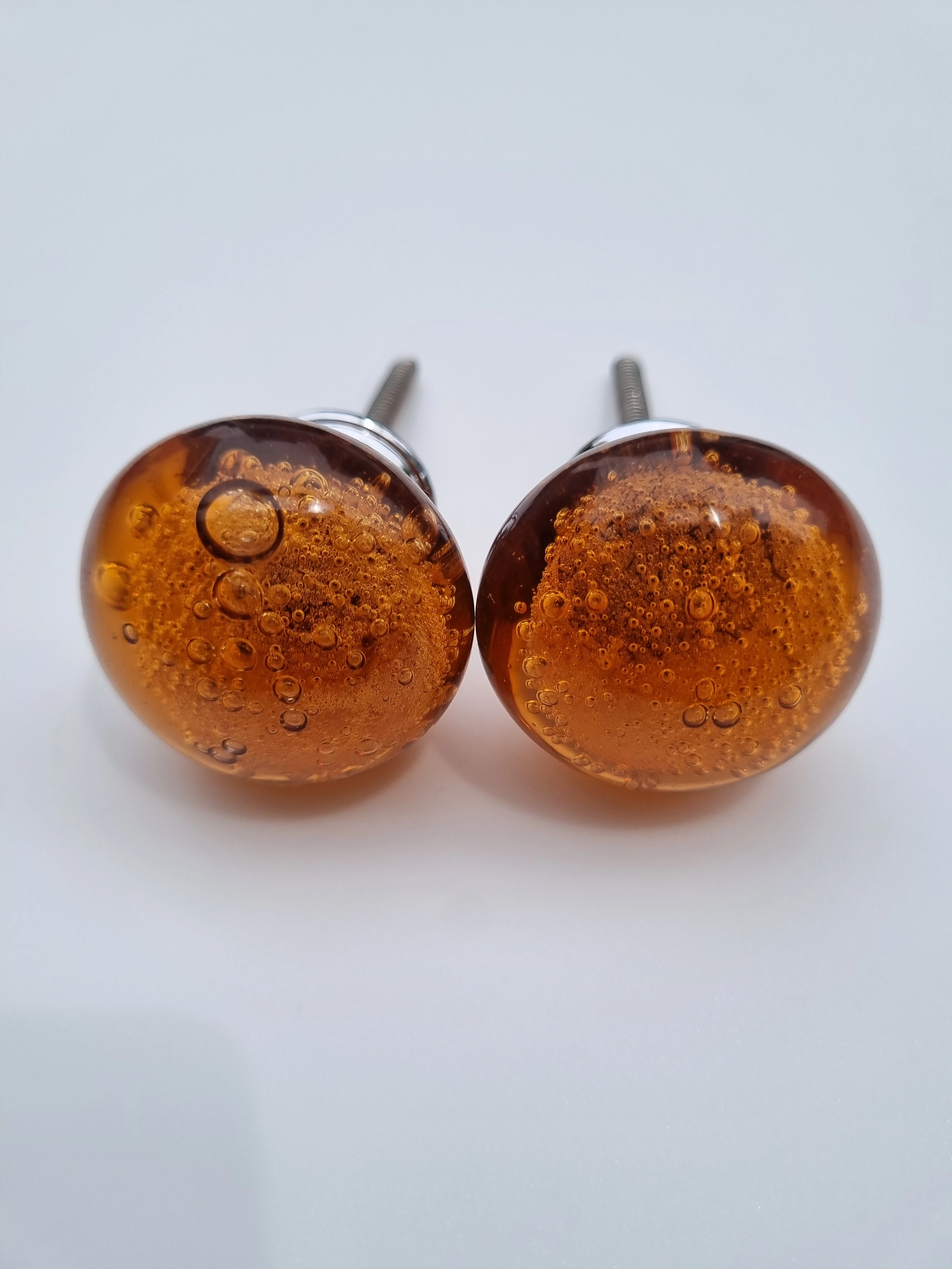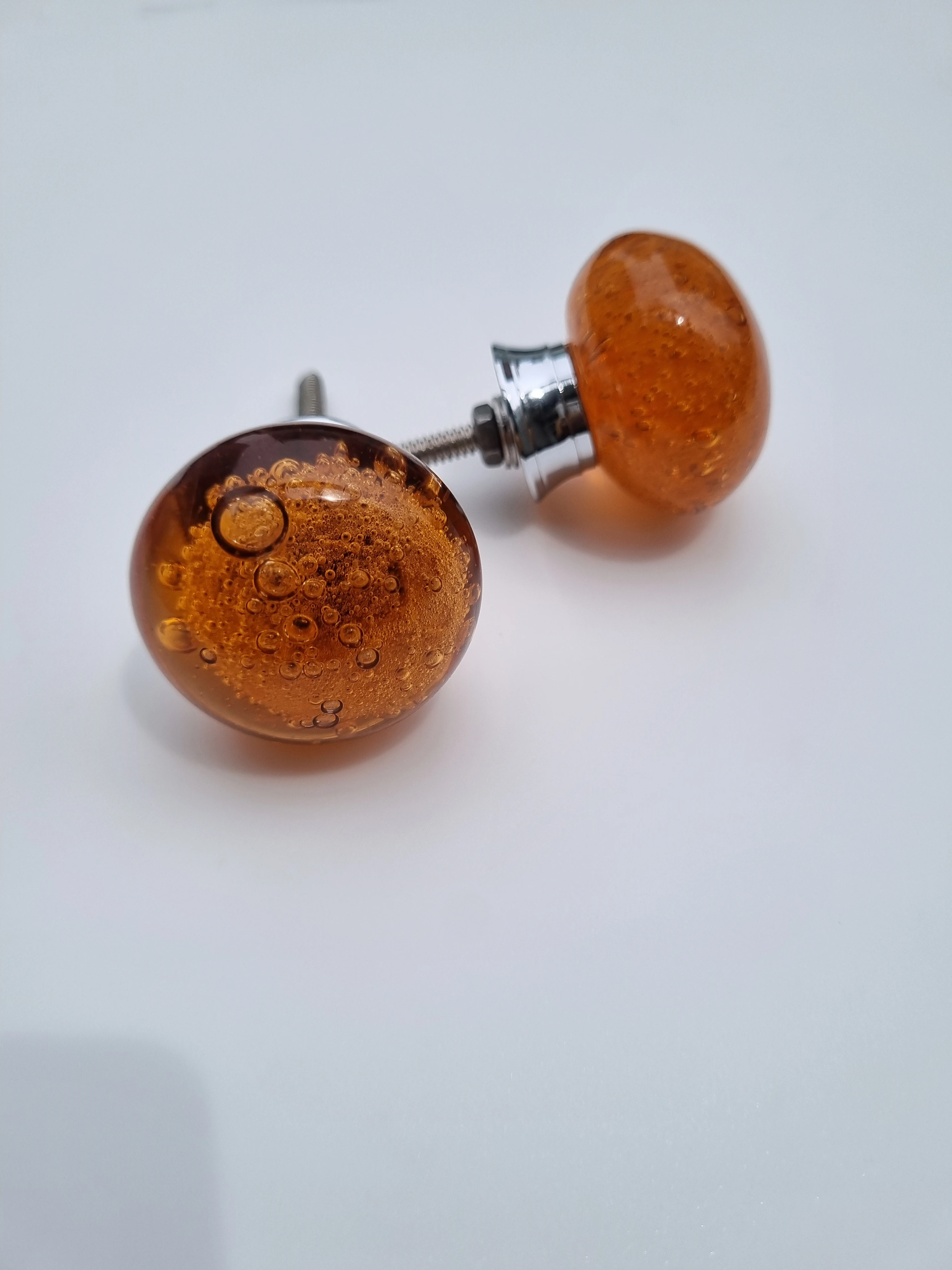 Add warmth and elegance to your furniture with these amber bubble glass knobs, designed to blend artistry with functionality. Each knob features:
