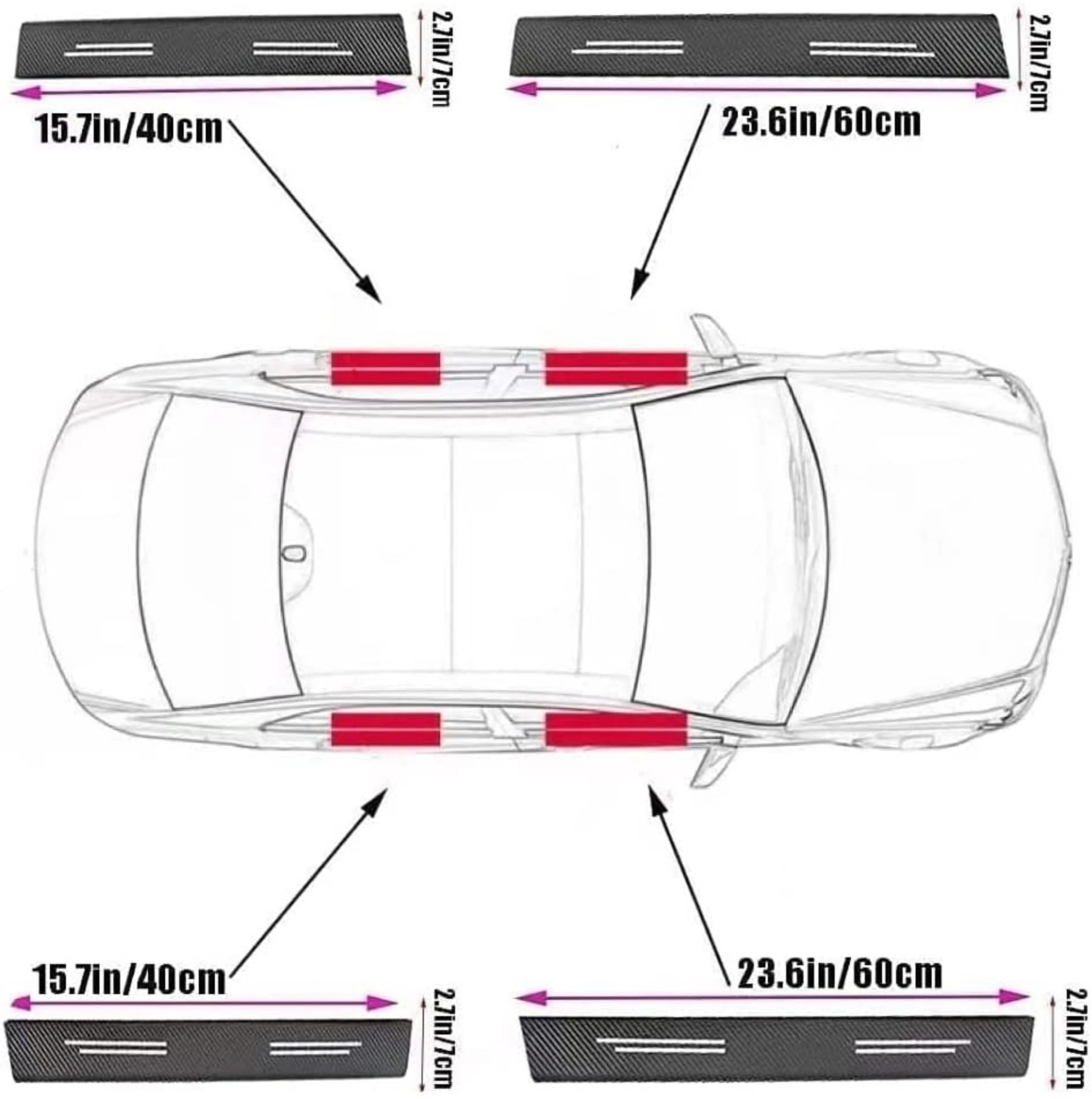 Universal Car Accessory: An essential part of car accessories all new stylish, this Universal 4 Pcs Car Door Sill Protector is a must-have car accessory. It's suitable for any car, offering a sleek black vinyl finish that complements any vehicle's interior or exterior. Anti-Scratch Tape for Car: This Car Door Sill Protector doubles as an anti scratch tape for car, providing extra protection against scuffs and scratches. Made of durable carbon fiber tape, it ensures your car remains in pristine condition. Carbon fiber Wrap: This car door sill protector is not just a practical accessory, it's also a car decoration. The carbon fiber wrap adds a stylish touch to your car interior decoration accessories, enhancing the look of your vehicle. Car Protection: Our car door sill protector offers essential car protection accessories. It acts as a barrier against scratches, ensuring your car's door sill remains unscathed. It's an ideal part of car accessories interior all new stylish. Easy Installation: This car door sill protector is easy to install. Simply clean the surface, peel off the backing of the carbon fiber wrap, and apply it. Perfect for car enthusiasts looking for car modification accessories or car exterior accessories.