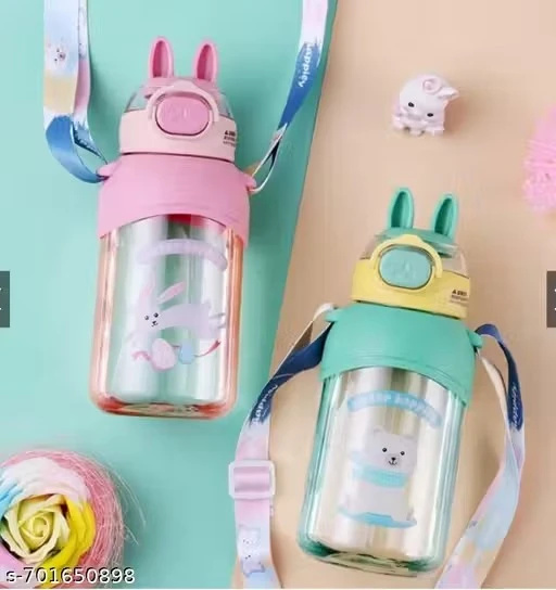 Name: cartoon print Bunny ears BPA Free Straw water bottle for girls, boys and kids 650 ml Water Bottle (Set of 1, Multicolor)
