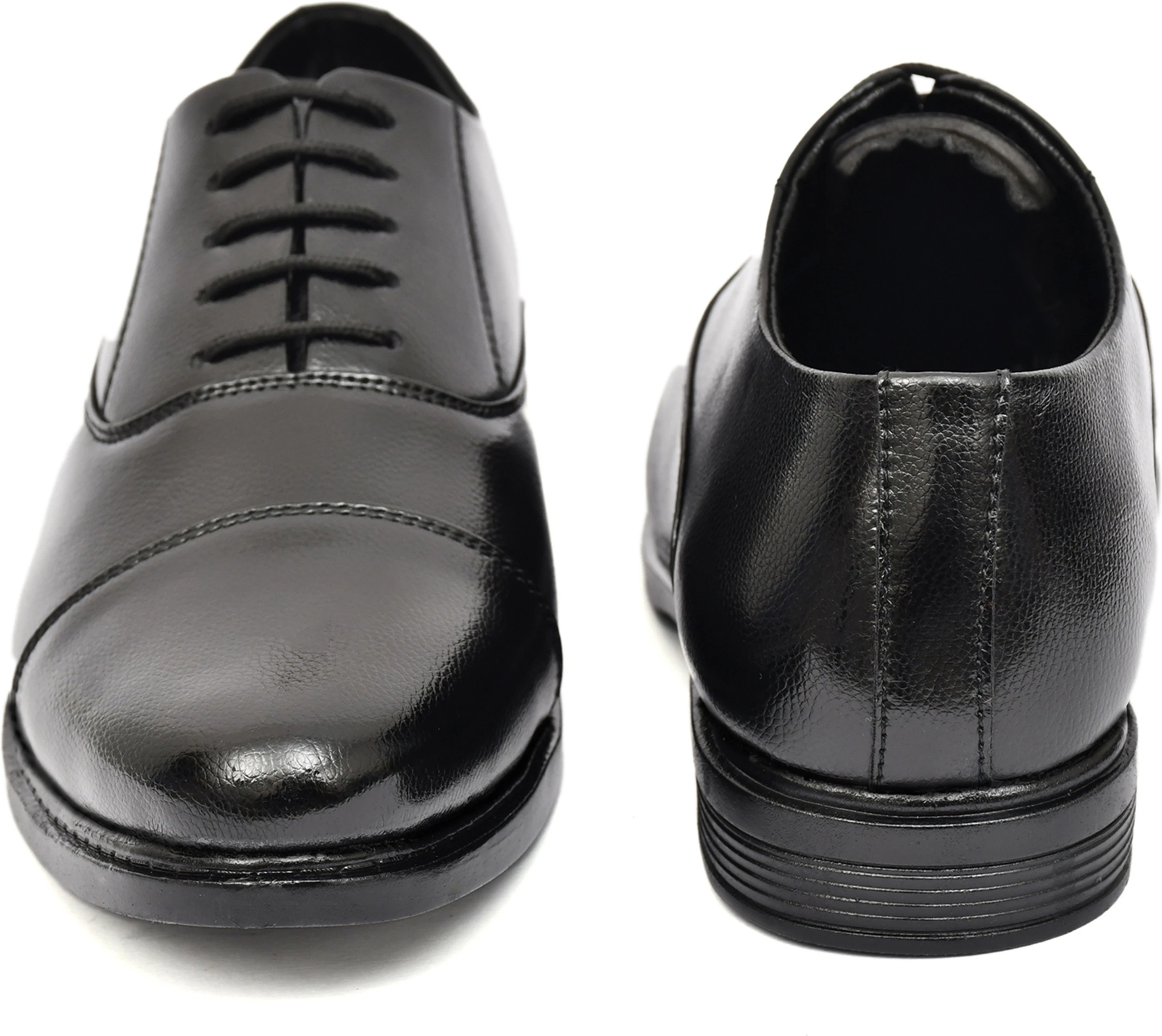 Step out in style with these classic black formal lace-up shoes. Crafted from high-quality synthetic leather with a subtle textured finish, these shoes feature a sophisticated cap toe design. The comfortable fit and durable sole make them perfect for long hours. Ideal for formal occasions, office wear, business meetings, and special events. Pair them with suits, trousers, and formal shirts for a polished and professional look.