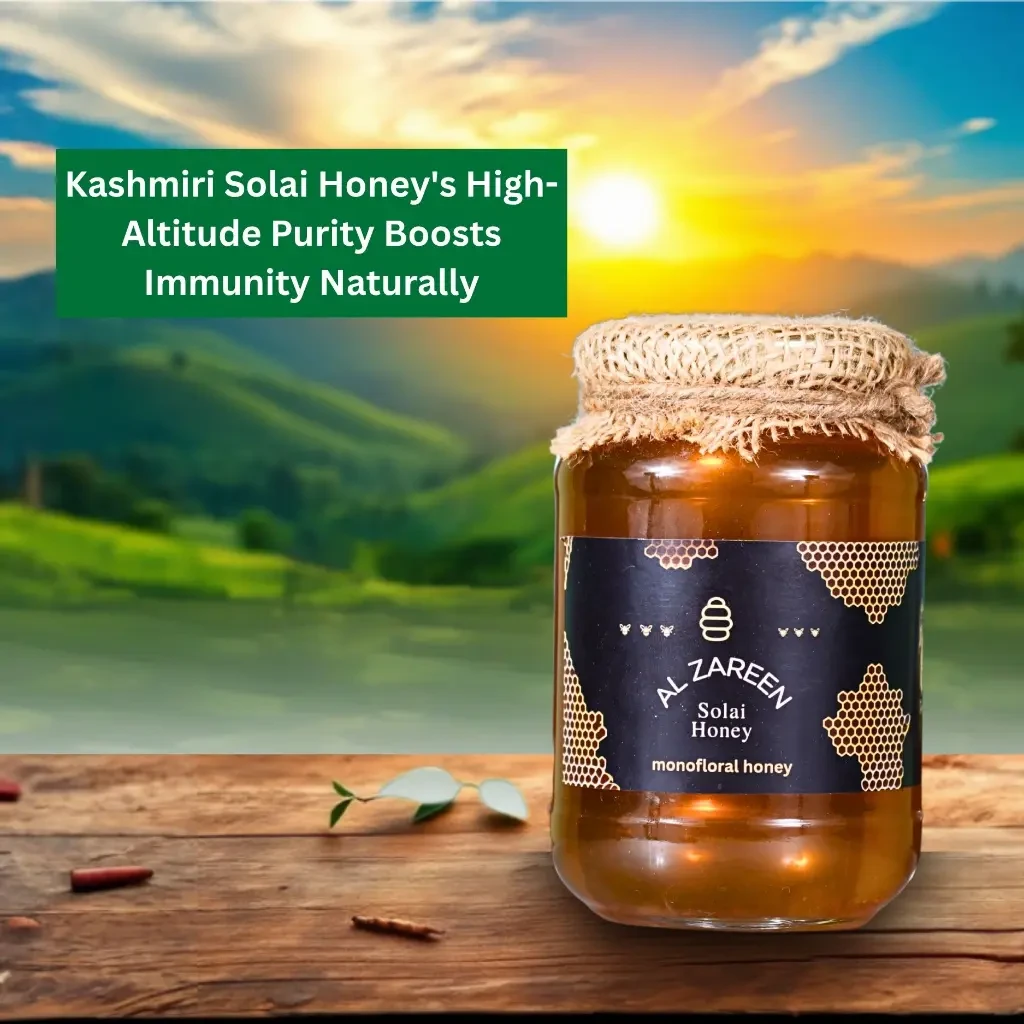 Kashmiri Solai Honey is a premium, all-natural honey sourced from the pristine valleys of Kashmir, where bees forage on wild Plectranthus flowers (also known as Solai or Vana Tulsi). This honey is gently filtered to remove impurities while preserving its natural enzymes, antioxidants, aroma, and nutritional value. Unlike heavily processed commercial honeys, it is unheated and free from added sugars, chemicals, or preservatives, ensuring authentic purity and flavour.