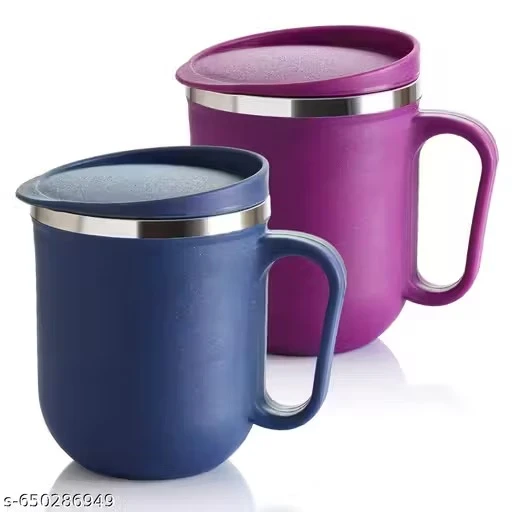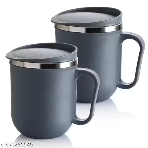 Name: Plastic Inner Stainless Steel Tea/Milk/Coffee Mug Set Of 2 Pic - 300 ML EACH