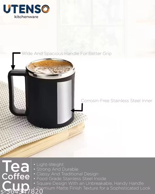 Upgrade your drinkware collection with this Premium Black Stainless Steel Coffee & Tea Mug Set designed for durability, style, and practicality. These lightweight, BPA-free, and unbreakable 220ml cups are perfect for everyday use in your home, office, or travel adventures. With a sleek black finish and classy design, these mugs make a luxurious yet functional addition to your kitchen.