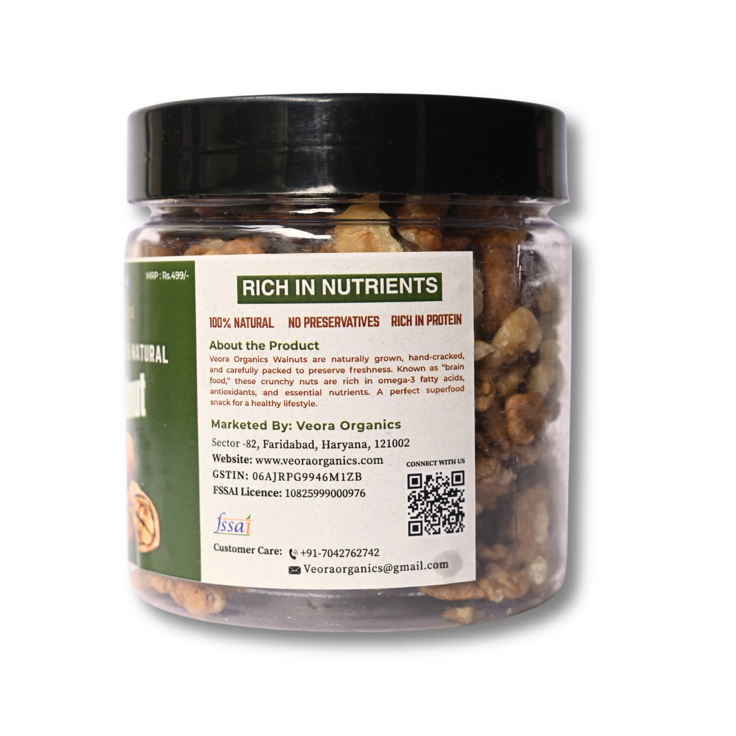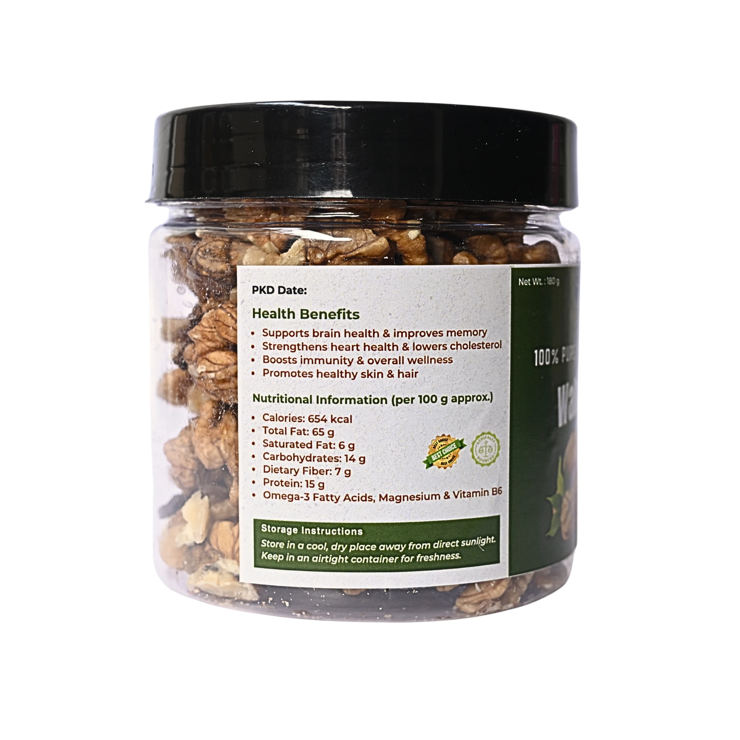 Boost your health with the natural crunch of Veora Organics Walnuts, sourced directly from trusted farms and packed with care. These 100% pure, organic, and chemical-free walnuts are rich in Omega-3 fatty acids, protein, fiber, vitamins, and minerals, making them one of the healthiest dry fruits for daily consumption.