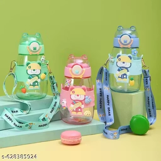 Name: X Pulse BPA Free Plastic Cute Water Bottles for Kids with Soft Silicone Straw, Adjustable Strap and Secure Lock, 600ml (Pack of 1, Multicolor)